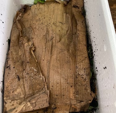 (Tip: Just remember we are only going to be filling one box and you can always add more newspaper, shredded cardboard, old egg containers, or leaves and you will be adding in kitchen scraps.)