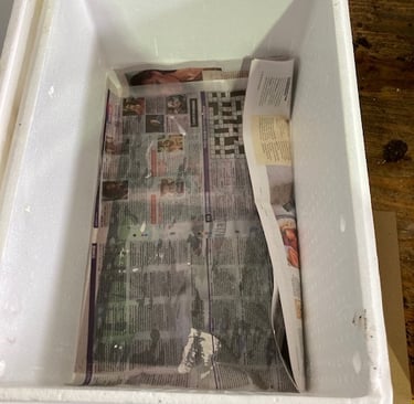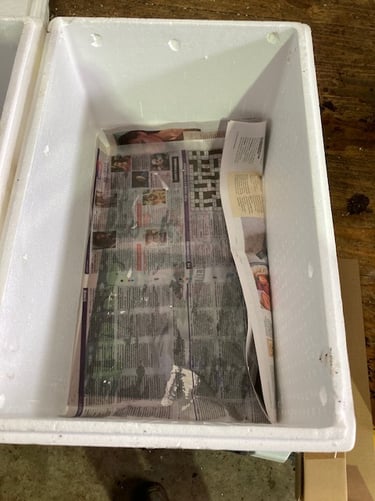Line the bottom of the working bin with damp newspaper (around 2-3 sheets) or