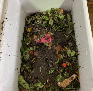 Cover the bedding surface with a thin layer of chopped kitchen scraps. (remember the smaller the size the quicker the worm eats it. You can even make them smoothies or